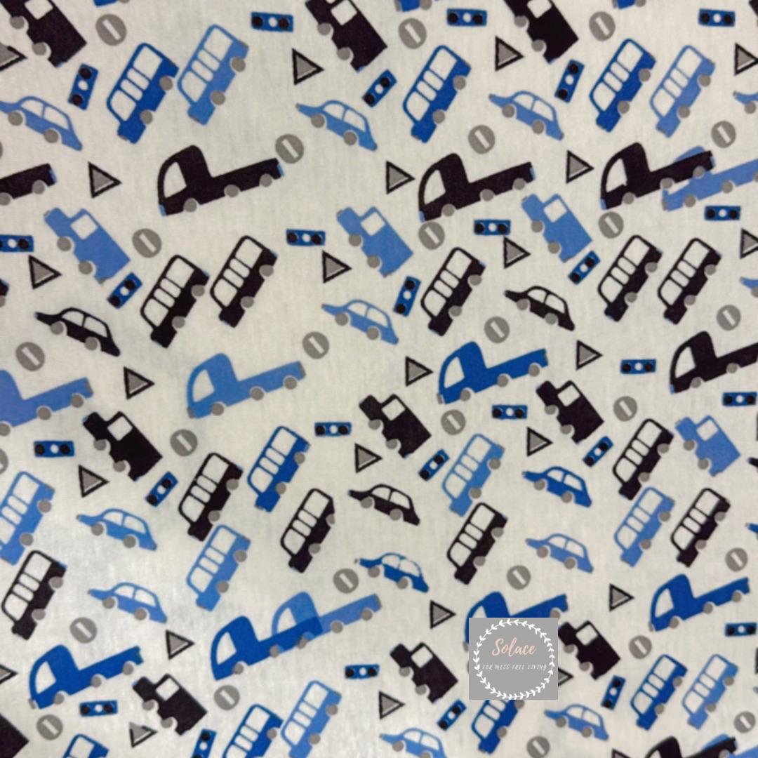 Premium blue white car printed hosiery bedsheet with same pillow covers