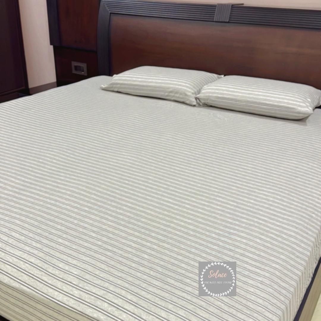 Premium Grey Black stripes hosiery bedsheet with same pillow covers